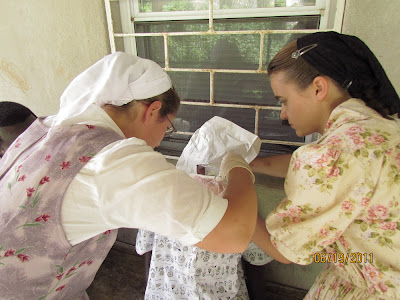 | Anita and Virginia Rudolph tackling the project…. He showed up just after church on Sunday… |