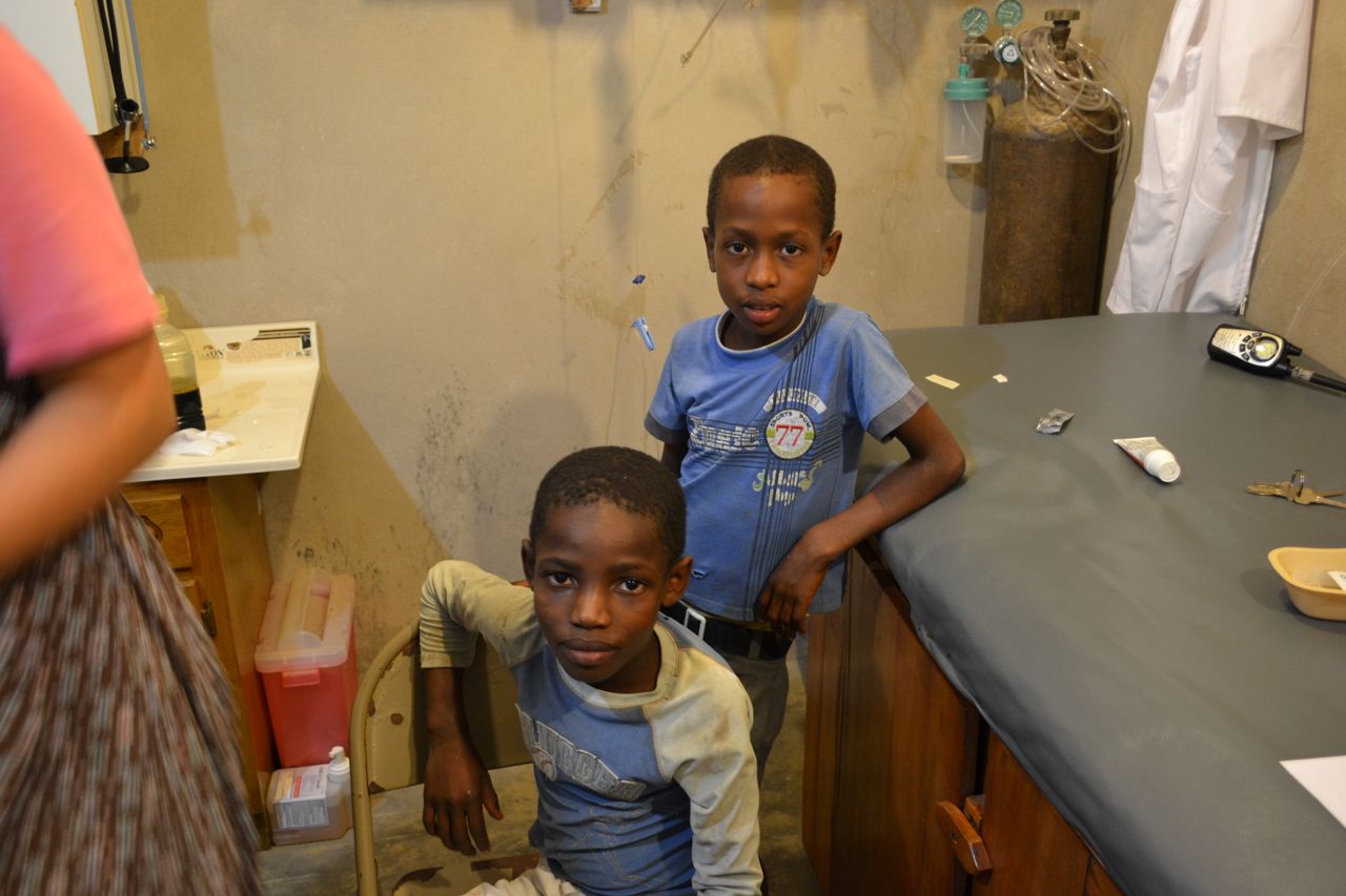 Some youngsters came around the other day, one of them needing a bandage on his head. What they did, we’re not entirely sure, but they were working (“ap travay”) in their family garden when it happened. The result was a small puncture wound on the top of one little guy’s head.