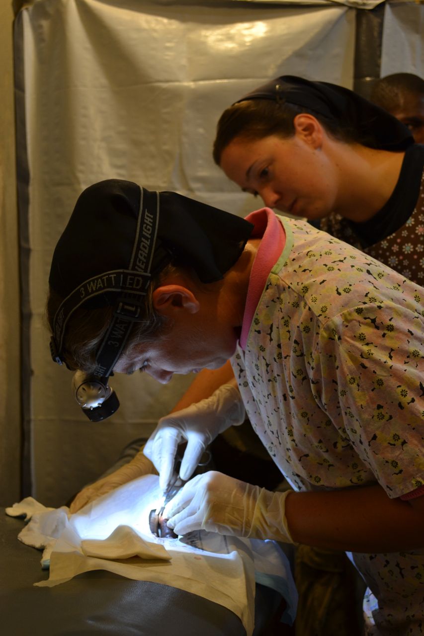 Further cleaning, getting dirt (and such) out of the wound and sterilizing it.