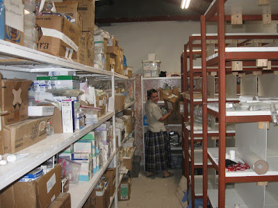 Virginia and Breanna working in the depot (storage room) at the new clinic